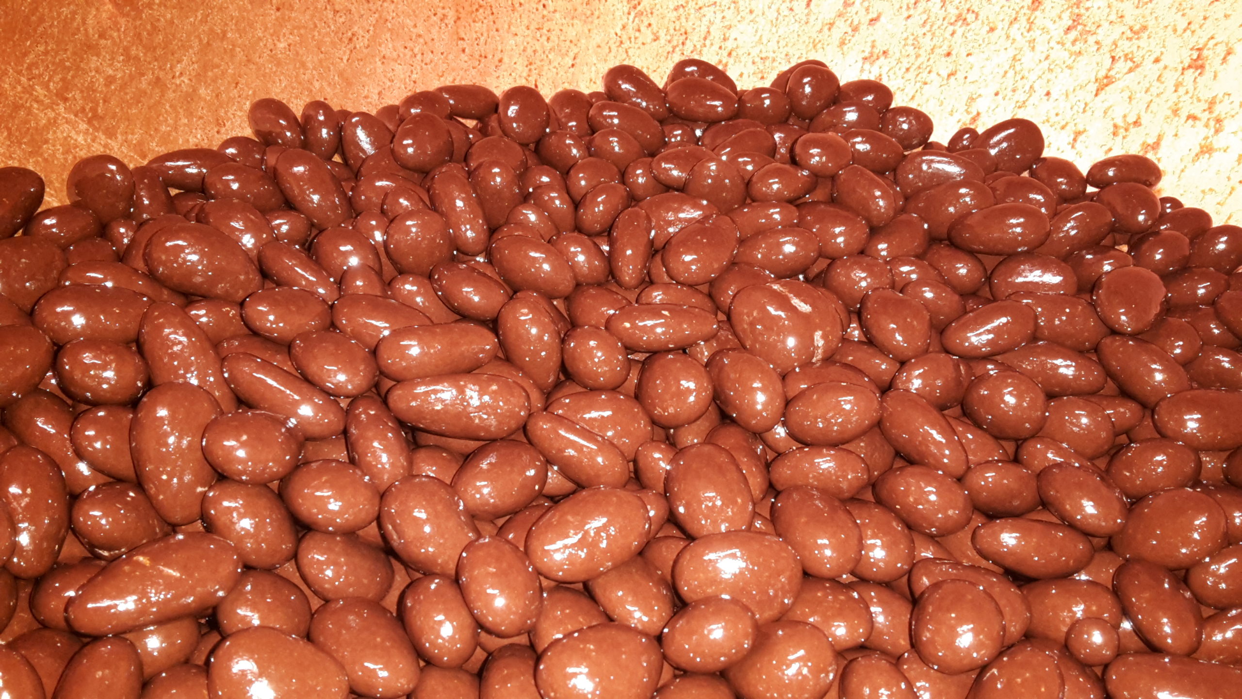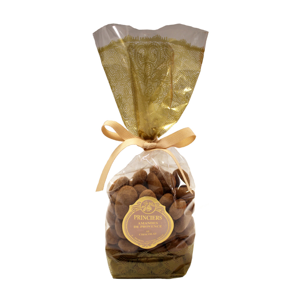 Sachet d’amandes enrobées au chocolat noir « maison » et cacao en poudre 100% Pure Origine. Attention, très gourmand!